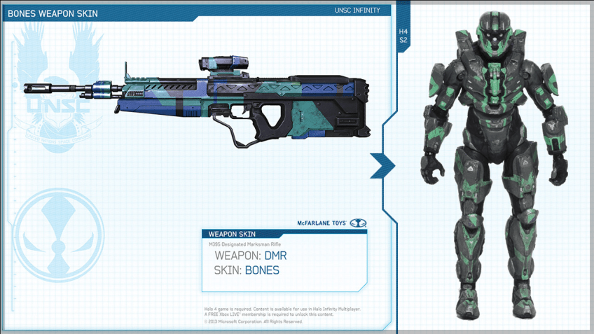 Halo-4-Bones-Weapon-Skin Published June 6, 2013 at 1281 × 721 in Halo 4 New Weapon Skins! New Armor Skins! McFarlane Toys Share this: Share on X (Opens in new window) X Share on Facebook (Opens in new window) Facebook Share on Reddit (Opens in new window) Reddit Share on Tumblr (Opens in new window) Tumblr Email a link to a friend (Opens in new window) Email Like Loading...