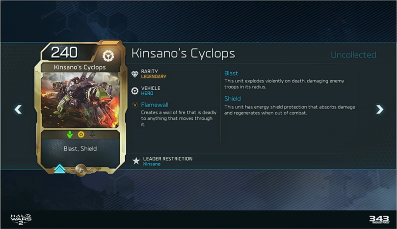Kinsanos Cyclops – Blitz Card Published March 12, 2017 at 809 × 466 in Halo Wars 2 DLC Leader Reveal – Pax East 2017 Share this: Share on X (Opens in new window) X Share on Facebook (Opens in new window) Facebook Share on Reddit (Opens in new window) Reddit Share on Tumblr (Opens in new window) Tumblr Email a link to a friend (Opens in new window) Email Like Loading...